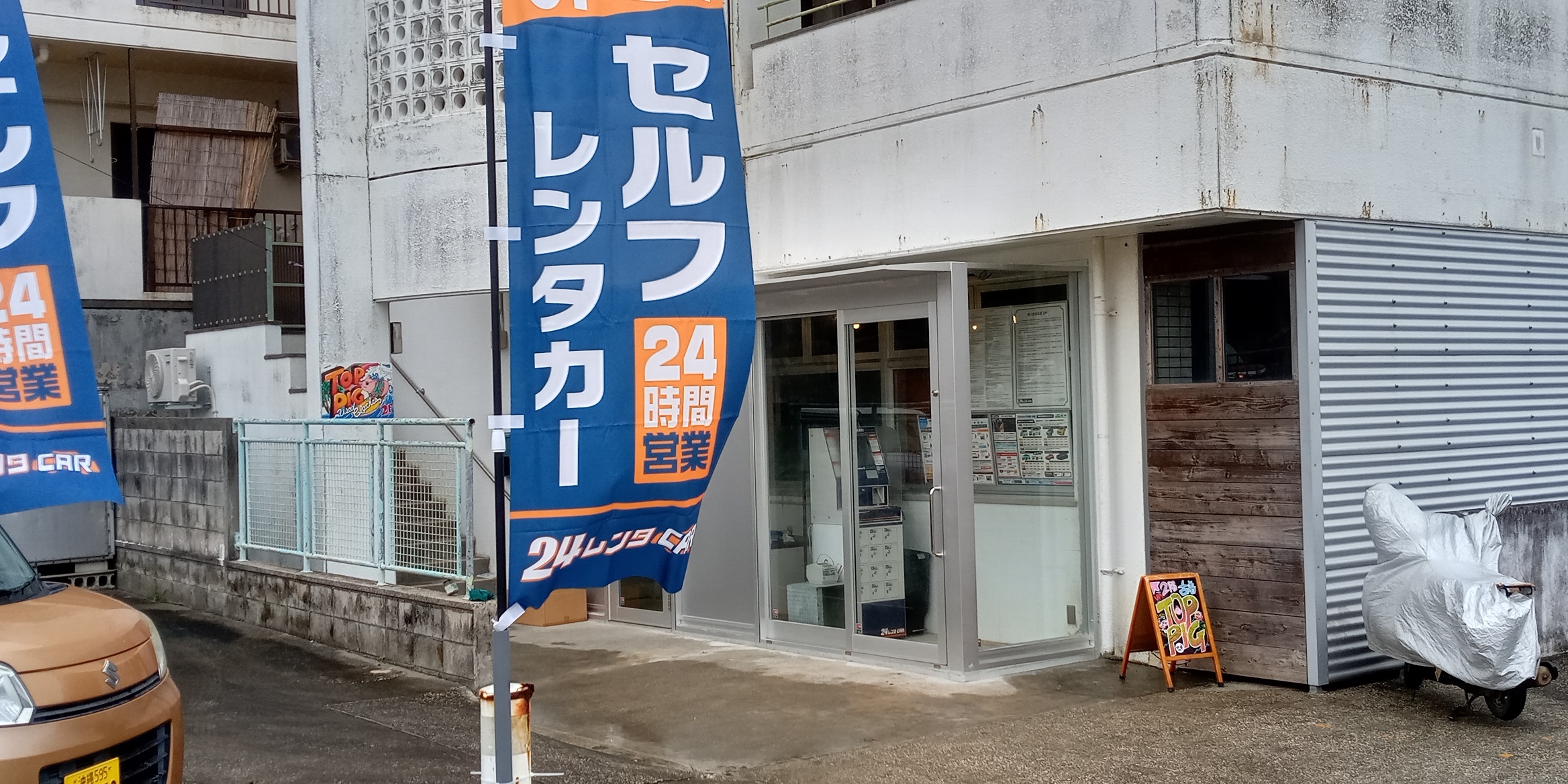 宮古空港から車で5分、徒歩12分。沖縄県宮古島市平良字西里1444-6の宮古島空港店でいつでも借りられる・いつでも返せるセルフレンタカーのご予約はこちら!
